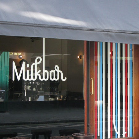 Có một cái gì đó rất quen thuộc và văn hóa ăn sâu về chuyển động của việc lắ sữa. Milkbar tận dụng tối đa kết nối cảm xúc này với một kiểu typographic thông minh, tạo cảm giác thoải mái. Việc xây dựng thương hiệu làm nổi bật khái niệm đổ với sọc “dọc” dài chảy ra khỏi các cạnh trên cùng và dưới cùng của cửa sổ quán cà phê.
