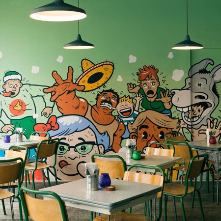 Trong quá trình chuẩn bị cho việc khai trương Taco República, quán rượu đầu tiên của Na Uy, cộng đồng địa phương được cho là đã phát điên vì phấn khích. Bị lệch khỏi thiết kế dự kiến cho một nhà hàng Mexico, thiết kế kết hợp các hình minh họa phong cách hoạt hình hài hước của sự phấn khích này. Một logo đơn giản với các dạng chữ cổ điển và serifs cung cấp sự cân bằng cho mắt. Vẻ đẹp của thiết kế này nằm trong việc kết nối doanh nghiệp với cộng đồng mà nó đang phục vụ.