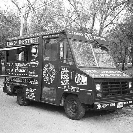 El Camino Foodtruck phục vụ cho một loạt các khẩu vị ở Monterrey, Mexico. Họ phục vụ mọi thứ từ bánh mì kẹp thịt theo phong cách Texas đến các món chay. Câu trả lời của thiết kế logo cho phạm vi thực phẩm rộng lớn này gần như không phải là chính nó, mà là ngôn ngữ kiểu bảng đen trực quan. Tên thương hiệu xuất hiện nhiều lần trong các biến thể của phông chữ serif, phông chữ sans-serif, chữ thảo, hình minh họa và ký hiệu. Sự pha trộn phong cách này nói lên cách họ pha trộn các kiểu thức ăn khác nhau!
